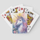 Playing cards with a majestic unicorn with a golden horn surrounded by vibrant flowers. Its mane flows in shades of purple, pink, and blue, blending seamlessly into a soft, dreamy backdrop.