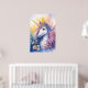 Poster of a majestic unicorn with a golden horn surrounded by vibrant flowers. Its mane flows in shades of purple, pink, and blue, blending seamlessly into a soft, dreamy backdrop.
