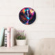 Wall Clock, 25.4 cm Round Black Wooden Frame