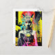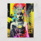 A beautiful woman and animals in a bold coloured mixed media collage AI generated art