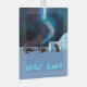 A digital painting featuring an igloo on the polar ice pack, sled dogs and a man in a parka. The northern lights glow overhead. Inuktitut text reading "Kuvianak Innovia" (ᑯᕕᐊᓇᒃ+ᐃᓄᕕᐊ - Merry Christmas), in the syllabic alphabet adopted in Nunavut, also appears in glowing blue and white. The Inuit are commonly referred to as Eskimo, but that term is now disfavored as it is considered to be pejorative.