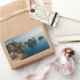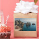 Rectangular photo sticker with the famous I Faraglioni rocks in the mediterranean sea and the red Tonnara building in the town of Scopello, near Lo Zingaro nature reserve on the north coast of the island of Sicily, Italy.