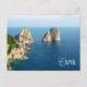 The iconic Faraglioni stacks off the coast of Capri in Italy. Stella, the tallest of the three steep columns of rock, is still attached to the mainland and reaches a height of 109 m.