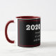 Modern, minimalist NEW YEAR Coffee Mug showing black and white halves with thin red borders. The text reads 2020 FAREWELL IT'S OVER AND DONE, LOOKING FORWARD NOW TO 2021. On one side there is a vertical HAPPY NEW YEAR, which is CUSTOMIZABLE so you can personalise with your name or own greeting. A stylish New Year mug to say Farewell to 2020 and to embrace the New Year ahead.