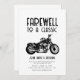 If you love simple, this simple style invitation is right for you. The invitation features an elegant design, with a soft, white background with a vintage motorcycle In the centre, the party details are beautifully scripted in a black block vintage font exuding an air of sophistication. Welcome guests and honour your retiree, with this retirement party invitation. Background colour and text is editable.