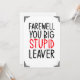 Farewell, you big stupid leaver Greeting Card , Graduation Miss you Card Gift For Employees Boss, coworker leaving for new job, holiday christmas birthday