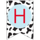 farm birthday party bunting banner with barn and farm animals and cow print background.