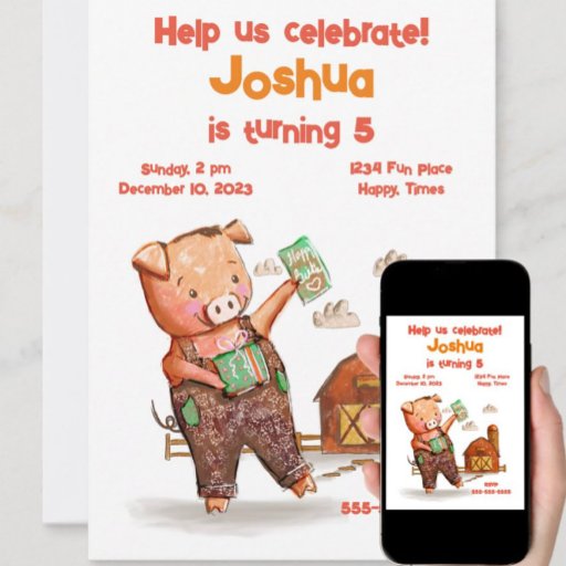 Create your own personalised birthday party invitation featuring a cute farm/rural scene. Input your own information in the text areas.