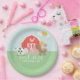 cute farm animal birthday party plates with cow, horse and pig and barn.. Oink Moo Cock-a-doodle doo