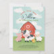 Celebrate your little one’s 2nd birthday with this cute farm animal barnyard invitation featuring a Watercolor style red barn, baby pig, cow, sheep, and chick. Fun and colourful, with “Oink, Baa, Moo – [Name] is turning two!” on the front and classic red gingham on the back. Perfect for a toddler’s farm birthday party!