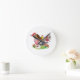The clock did not take as long to arrive as I thought it might and was extremely well packaged. I didn't do the measurements so I didn't realize it is a little smaller than the average clock but that does not matter (just make sure you check if that's important to you).It is really nifty! It seems very solid and well made not flimsy at all. It has been going well and has kept good time in its few weeks on my wall. Nice product. Gets noticed too! Nicer in real life than the picture but true to the picture