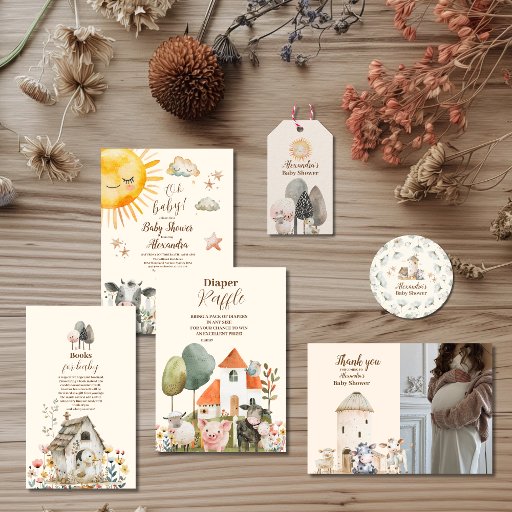 Add a rustic and charming touch to your baby shower with our Farm Animals Baby Shower Stone Coasters. These coasters feature adorable farm animal designs, including sweet cows, playful pigs, and fluffy sheep, perfect for adding a touch of countryside charm to your event.