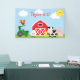 Backdrop design in Farm Animals theme with blue polka dot background.