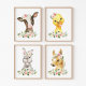 Add the finishing touches to your baby’s nursery or child’s bedroom with these gorgeous art prints! Design features farm animals (cow, duck, horse, bunny), pink watercolor flowers and greenery.