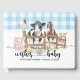 This cute baby shower guest book features a pig, chicken, cow and horse on a light blue background pattern. Personalise for your needs. You can find more matching products at my store.