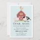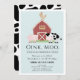 This cute and modern "oink, moo, cock-a-doodle do" gender neutral or boy's 1st/first birthday party invitation features a pig, chicken, and cow with a red barn on a light blue background framed by a white border. The reverse side features a white background with black cow patterns. Personalise for your needs. You can find matching products at my store.