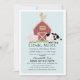 This cute and modern "oink, moo, cock-a-doodle do" virtual/online boy baby shower invitation features a pig, chicken, and cow with a red barn on a light blue background framed by a white border. The reverse side features a white background with black cow patterns. Personalise for your needs. You can find matching products at my store.