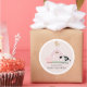 This cute and modern girl' baby shower sticker/label features a pig, chicken, and cow with a pink barn on a blush pink background framed by a white border. Personalise for your needs. You can find matching products at my store.