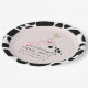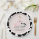This cute and modern "oink, moo, cock-a-doodle do" girl baby shower paper plate features a pig, chicken, and cow with a pink barn on a blush pink background framed by a border in black & white cow patterns. Personalise for your needs. You can find matching products at my store.