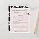 This cute and modern baby shower baby predictions & advice card features a pig, chicken, and cow with a pink barn on a blush pink background. The reverse side features a white background with black cow patterns. Personalise for your needs. You can find matching products at my store.