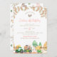 Invite your friends for some fun on the farm with this adorable farm themed birthday invitation featuring a tractor, hay bales, and all sorts of farm animals including a pig, horse, cow, sheep, ducks and geese. Easily customise the wording for your event with the online editor. Order printed invitations or purchase the digital download, or both.