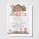 Invite friends and family in style and set the tone for your special day with this charming baby shower invitation. Design features farm animals (cow, horse, sheep, pig, rooster, chicken), brown barn and brown tractor.