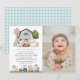 Invite friends and family in style and set the tone for your special day with this charming birthday invitation. Design features farm animals (cow, horse, sheep, pig, rooster, chicken), blue barn and blue tractor on white background.