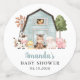 Add a personal touch to your baby shower celebration with these stylish and memorable party items! Design features farm animals (cow, horse, sheep, pig, rooster, chicken) and blue barn on white background.