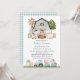 Invite friends and family in style and set the tone for your special day with this charming baby shower invitation. Design features farm animals (cow, horse, sheep, pig, rooster, chicken), blue barn and blue tractor on white background.
