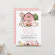 Invite friends and family in style and set the tone for your special day with this charming baby shower invitation. Design features farm animals (cow, horse, sheep, pig, rooster, chicken), pink barn and pink tractor on white background.