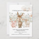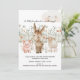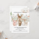 A pastel farmyard scene with a pig, donkey, and lamb gathered by a flower-draped picket fence sets a sweet and whimsical tone for a baby shower full of rustic charm and gentle joy. Suitable for a baby boy or girl. The back features a watercolor farm scene with chickens, a whimsical cat, a blooming tree and a white barn with a red roof, creating a cosy, rustic setting perfect for a countryside celebration. Personalise with your own information.