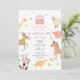 Farm Animals Girl Pink Gingham Barnyard Birthday Invitation