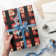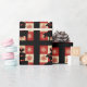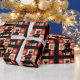 This country farm holiday Christmas wrapping paper features a stack of silhouette farm animals set against a vintage style red and white snowflake background. ^