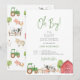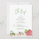 Oh Boy! Farm and tractor themed baby shower invitation with cute farm animals, red barn and green tractor. All text is editable, personalise with the wording of your choice.