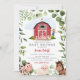 Cute farm animal invitation for your Farm or Barnyard-themed baby shower! Featuring farm animals and a red barn in a watercolour style.