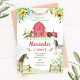 Birthday farm invitation with horses for kids birthday party. This birthday invitation has 3 lovely ponies, a red barn, a red tractor, sunflowers, cute little flags, and other ranch elements. Perfect for a children's birthday party barnyard theme.
