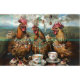 "3 Farm Chicks Tea Trio” gathers for a quaint tea party. Adorned with elegant jewellery, they sit at a rustic table set with delicate teacups and delectable cupcakes. The backdrop of the farm landscape, with its open fields and clear skies, adds a touch of bucolic charm to this whimsical assembly.