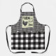Vintage style farm fresh egg, dairy style, advertisement in cream colour. The print also features a Barred Rock Hen, chicken eggs, and "15 cents" inside a sketched egg. The background of the apron is in farmhouse favourite, buffalo plaid.