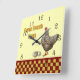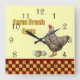 A country style design, with a vintage image of a hen in the right corner, and three vintage style eggs under the text "Farm Fresh Eggs". Country red and yellow checks border the outside.