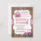 Farm Girl Invitation, Pink barnyard and tractor Invitation