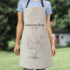 A rustic farm apron in brown tones, featuring an artful line illustration of a hen or chicken. Texts are fully customisable. It could be perfect for a family farm, food markets, grocery shops or just as a gift to a farmer!