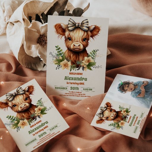Farm Holy Cow Highland 1st Birthday Photo Invitation