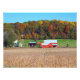 Photo of an Amish farm with sheep, house and red barn in autumn