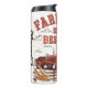 This is a rustic graphic design with a farm theme. The central image features a classic red tractor and a traditional red barn with a windmill. The scene is set in a ploughed field with a wooden fence and surrounded by bundles of wheat. The phrase "FARM LIFE IS THE BEST LIFE" is prominently displayed above the image in a bold, weathered font. The background is a simple grey with sunburst rays and clouds.