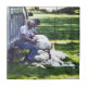A watercolor of two farmers hand shearing sheep an art rarely seen in these modern times.