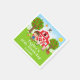This cute and fun napkin features a brown hair boy with fair skin beside a red barn with a rooster wind vane. There are adorable farm animals such as a cow, pig and hen. In the background is a bright blue sky, apple trees, sunshine, butterflies and daisies. The text combines bold and sans serif fonts for a stylish and modern look. This is perfect for a farm themed birthday party.