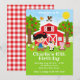Farm Red Barnyard Birthday Black Hair Girl Invitation