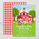 Farm Red Barnyard Birthday Brown Hair Girl Invitation