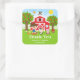 Farm Red Birthday Brown Hair Girl Thank You Square Sticker