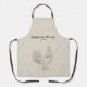 A rustic farm apron in brown tones, featuring an artful line illustration of a rooster. Texts are fully customisable. It could be perfect for a family farm, food markets, grocery shops or just as a gift to a farmer!